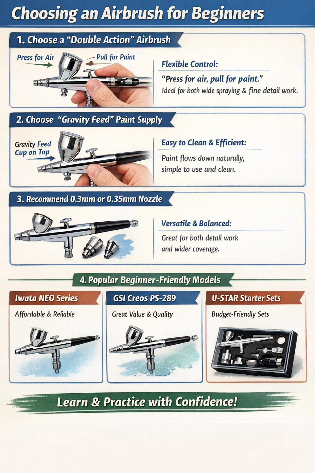 Hier einige praktische Tipps zur Auswahl einer Airbrush für Anfänger: